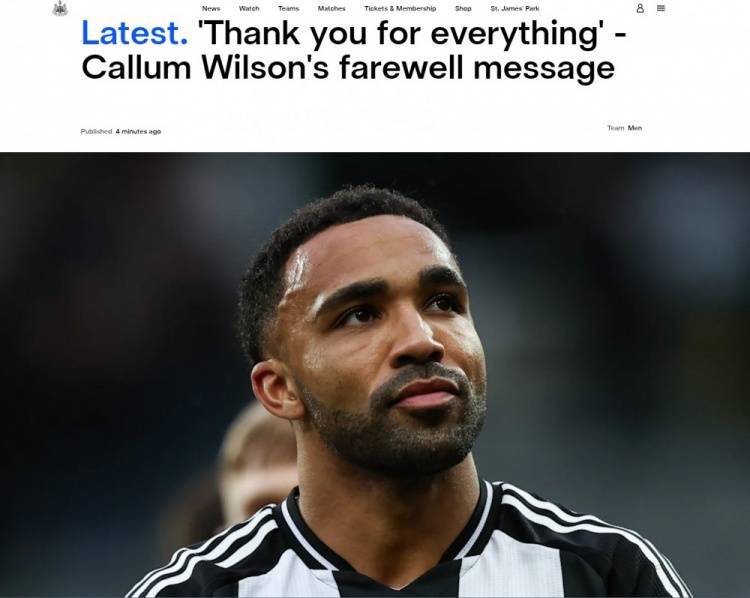 直播吧7月7日讯 纽卡斯尔官网消息,33岁的英格兰前锋卡勒姆-威尔逊合同到期,深情告别纽卡斯尔。